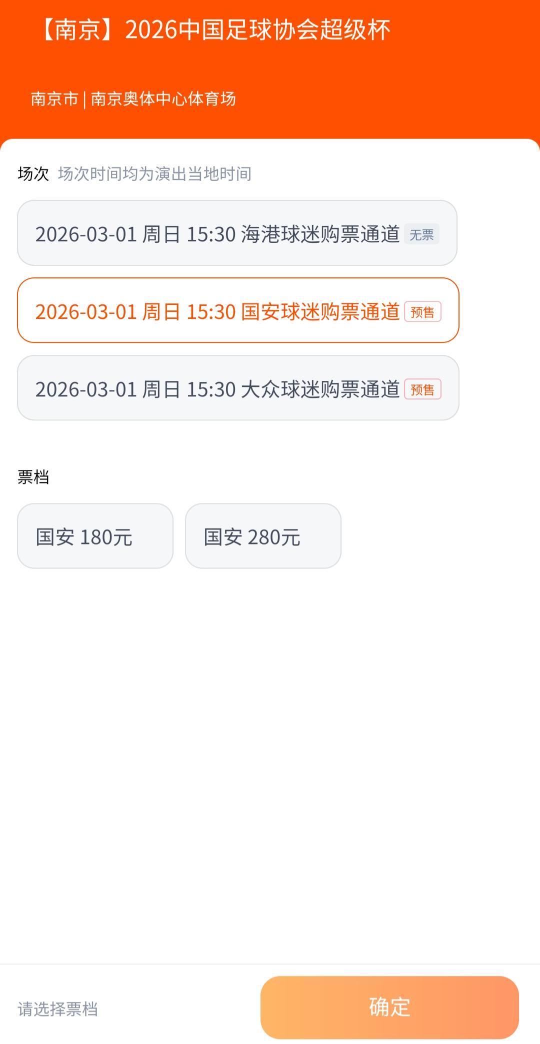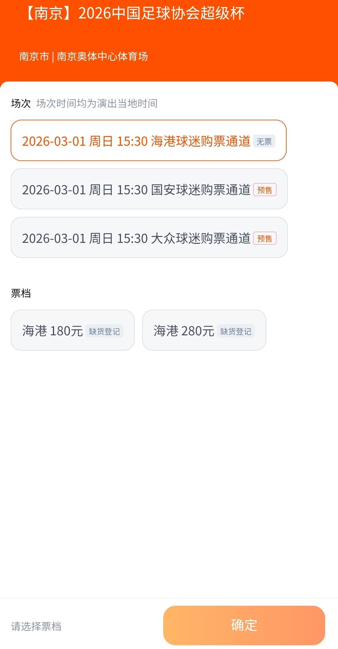 1月23日10:18,作为年度开篇大戏的2026中国超级杯球票正式开票。结果,名义主队上海海港的地缘优势明显,球票很快售罄;客队北京国安以及大众球迷的球票还在热销中。